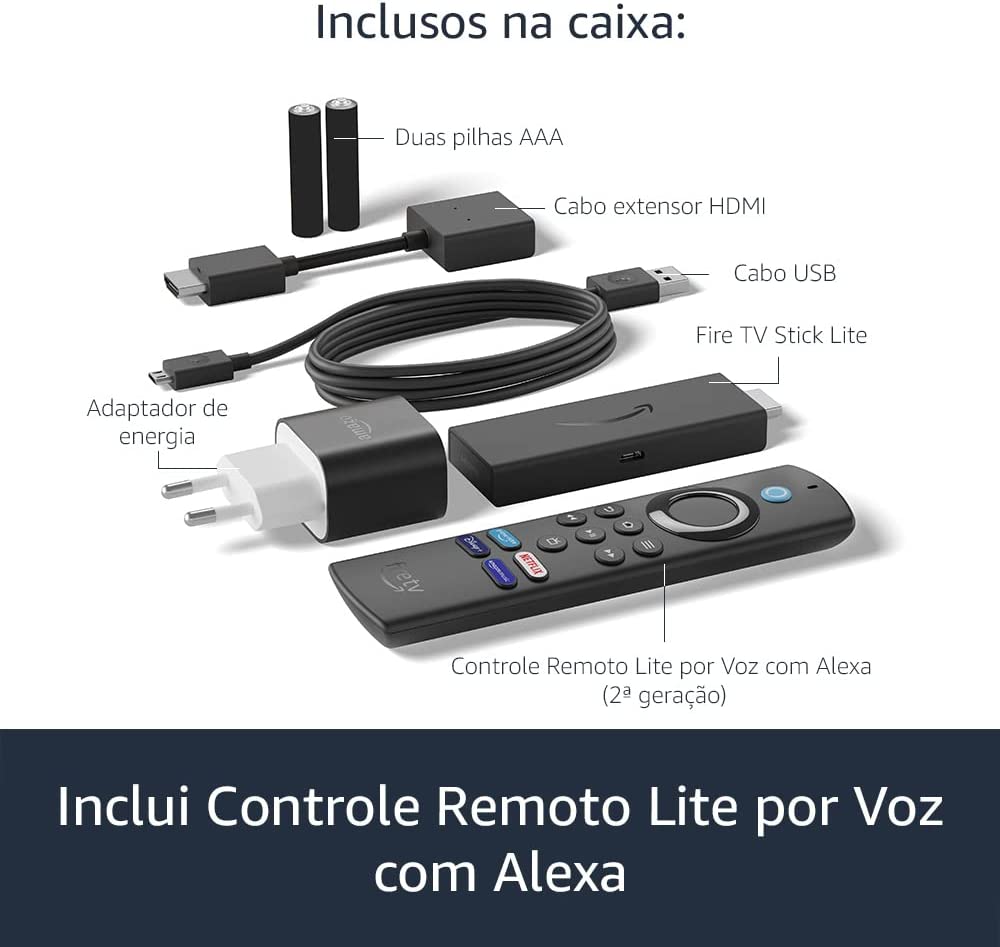 Fire TV com Alexa: aproveite streaming rápido e em Full HD. Vem com o novo Controle Remoto Lite por Voz com Alexa (sem controles de TV).