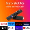 Pareie seu Fire TV Stick Lite com um Echo para usar o controle de voz com mãos livres do seu Fire TV com Alexa. Controle sua casa inteligente – Peça para Alexa para acender as luzes, mostrar câmeras, tocar músicas, informar a previsão do tempo e mais.